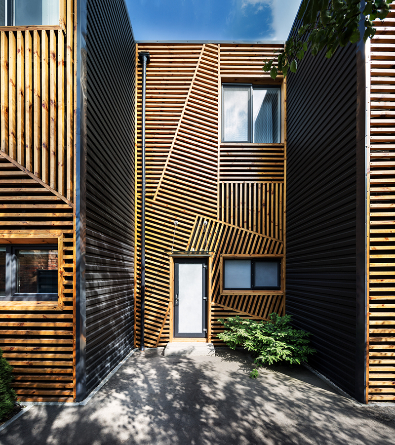 Với căn nhà gần 300 m2 xây năm 2015 ở Kharkiv, văn phòng Pominchuk đã tạo sự mới lạ cho vật liệu gỗ bằng cách biến chúng thành những hệ lam với trật tự khác nhau.